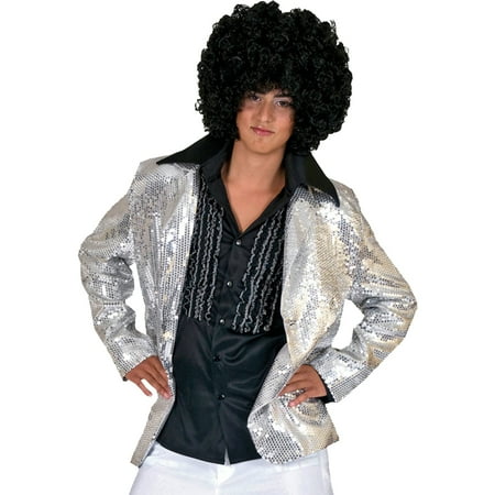 Silver Disco Jacket Adult Halloween Costume: Includes button-front lined sequin jacketMaterial content: polyesterCare instructions: hand wash